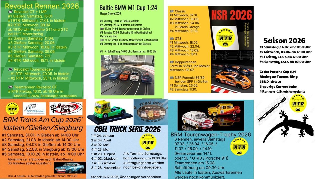 Der Rheingau-Taunus-Ring ist eine 6-spurige Autorennbahn in Idstein mit 41,60 Meter Spurlänge für analoge Slotcars im Massstab 1:32 und 1:24.